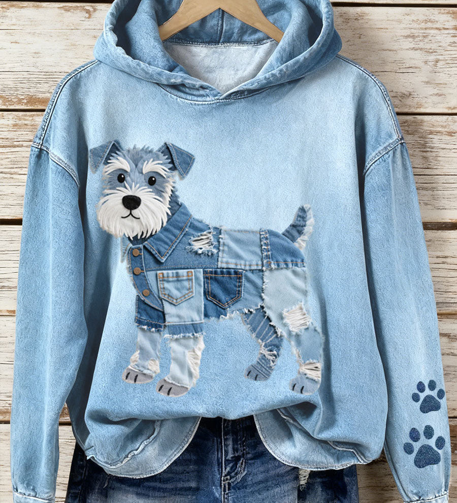 Lola - Ženska traper dukserica Patchwork Art s motivom Schnauzera