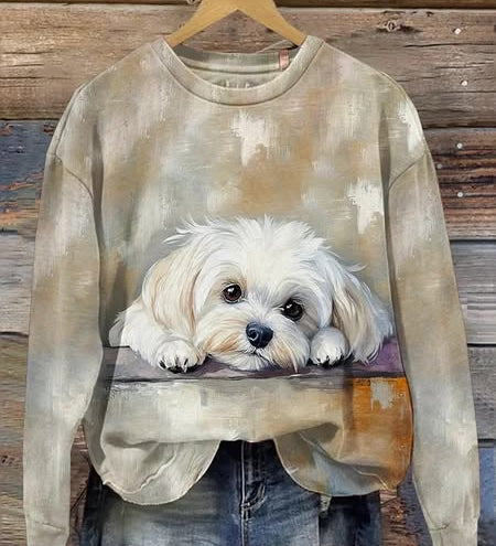 Mila - Ženska dukserica s dugim rukavima u retro patchwork stilu s umjetničkim printom životinja - Casual Comfort