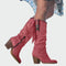 Ženske kaubojke inspirirane boho-western stilom, izrađene od suede materijala s posebnim detaljima. Imaju resice sa strane i ukrase s tirkiznim kamenjem i metalnim elementima koji daju jedinstven karakter. Srednja potpetica pruža udobnost i eleganciju, idealne za pojave koje kombiniraju slobodu i stil.