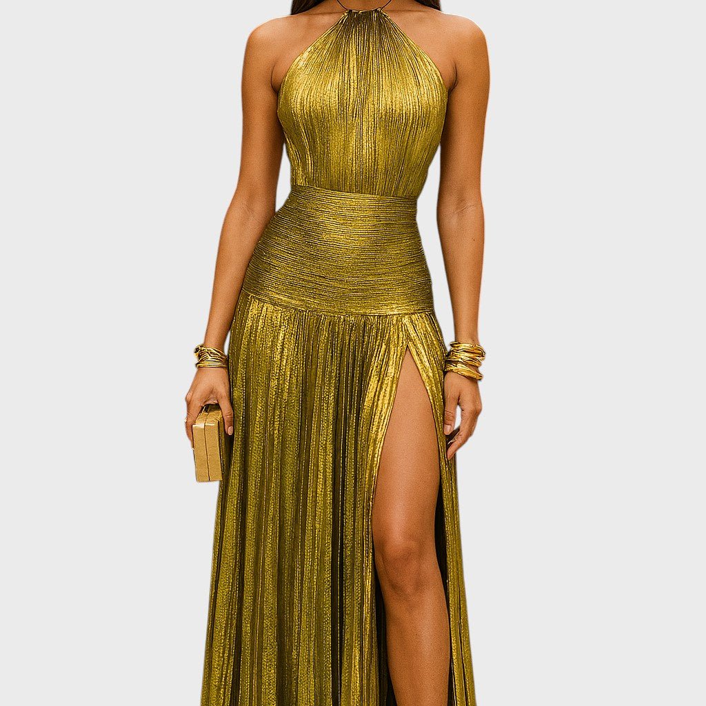 Katarina - Elegantna Haljina s V-Izrezom i Plisiranim Suknjom