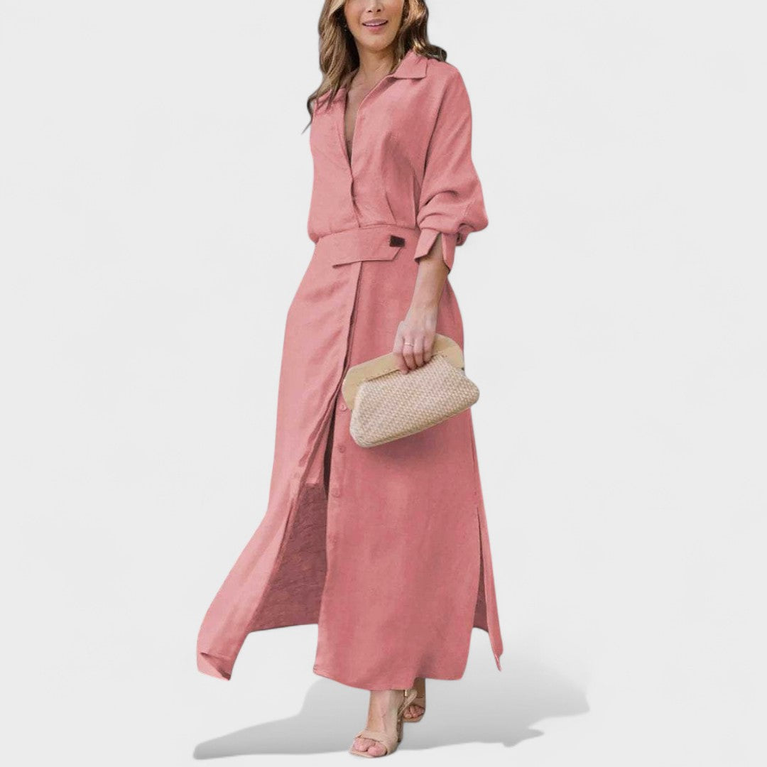 Ova maxi haljina odiše profinjenošću i jednostavnošću, pružajući elegantan izgled za svaku priliku. Sa ženstvenim krojem i detaljima koji laskaju figuri, savršen je izbor za dnevne i večernje kombinacije. Udobna i moderna, ističe prirodnu ljepotu uz dašak sofisticiranosti.