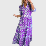 Ova košulja-haljina spaja klasiku i suvremeni dizajn. Zahvaljujući kroju s ovratnikom i gumbima, odiše elegancijom, dok upečatljiv uzorak daje dinamičan i moderan izgled. S tročetvrt rukavima i naglašenim strukom, pruža ženstvenu siluetu i udobnost tijekom cijelog dana. Idealna za posao, gradske šetnje ili večernje izlaske.