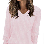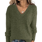Ovaj ženski V izrez dugih rukava pleteni pulover ima lagani, otpornik na gužvanje dizajn s oversized slobodnim krojem za jednostavno slojevito oblačenje ili nošenje samostalno. Meki i prozračni, savršen je za jesenske dane i prijelazna godišnja doba, nudeći opuštenu eleganciju i udobnost tijekom cijelog dana.