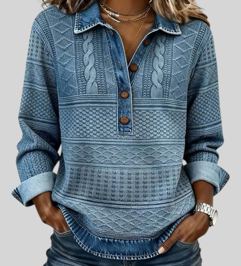 Amber | Topla Vafel Košulja s Elegantnim Vodopadnim Ovratom