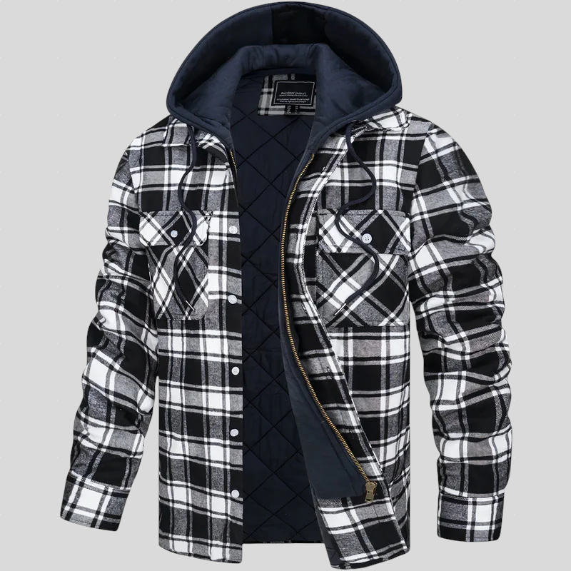 Karirana jakna s prošivenom unutrašnjosti koja spaja toplinu, udobnost i moderan izgled u jednom dizajnu. Prednji patentni zatvarač omogućuje praktično svakodnevno korištenje, dok integrirana kapuljača pruža dodatnu zaštitu od vjetra i hladnoće. Funkcionalni džepovi i suvremeni kroj čine ovu jaknu savršenim izborom za sve koji traže svestranost i opušten stil bez kompromisa u funkcionalnosti. Idealna za aktivnosti na otvorenom, posao ili casual nošenje.