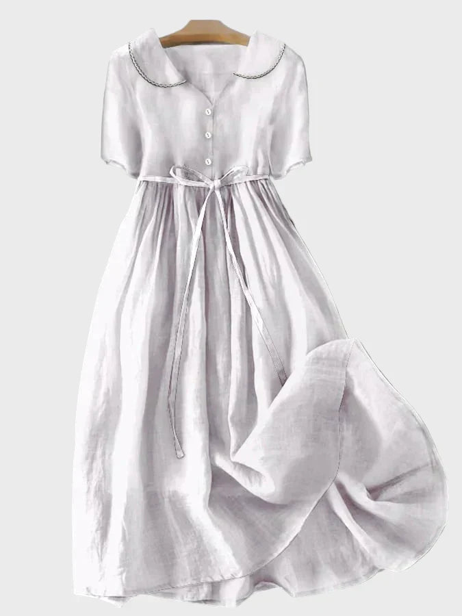 Ova nježna ljubičasta haljina isijava eleganciju i romantiku, idealna za svaku ženu koja želi istaknuti svoj stil s bezvremenskim izgledom. Minimalistički kroj naglašava ženstvenost, dok pojas u struku suptilno ističe oblik tijela.
