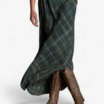 Udobni rukavi koji se mogu podvrnuti, praktičan ovratnik i elegantan gumbni zatvarač čine ovu haljinu savršenom za posao, šetnje, druženja ili putovanja. Karirani uzorak daje dozu rustikalne elegancije i čini je izuzetno lako uklopivom uz čizme, tenisice ili sandale — ovisno o sezoni.
