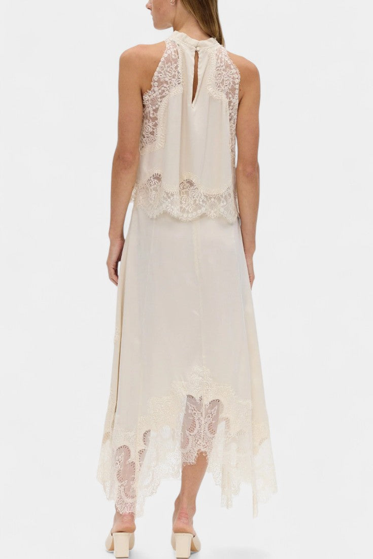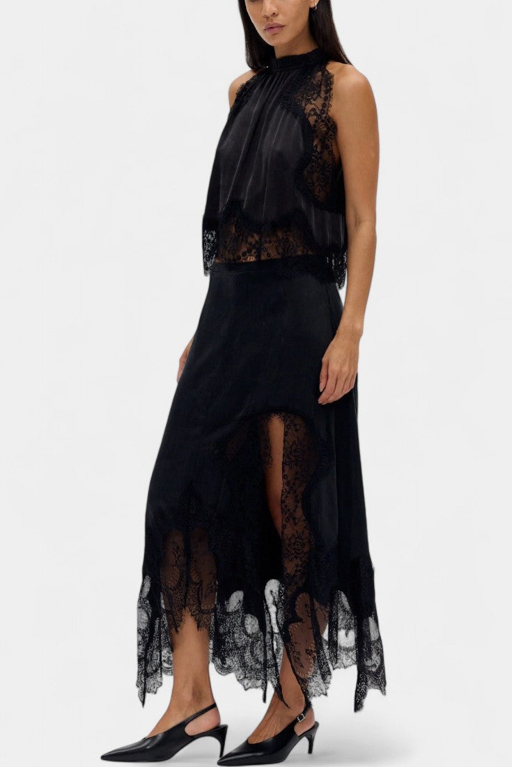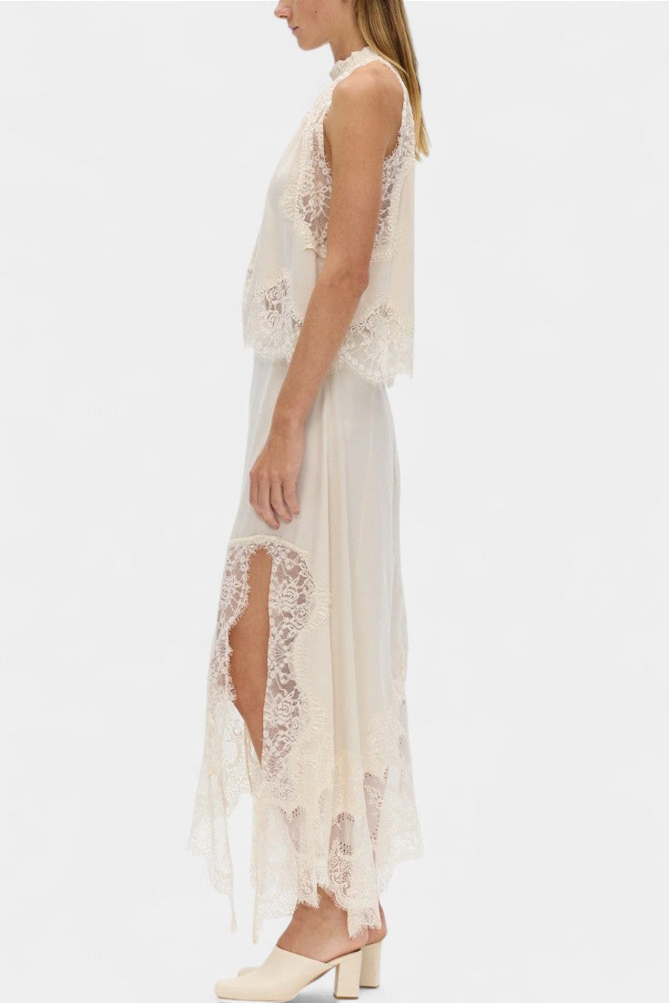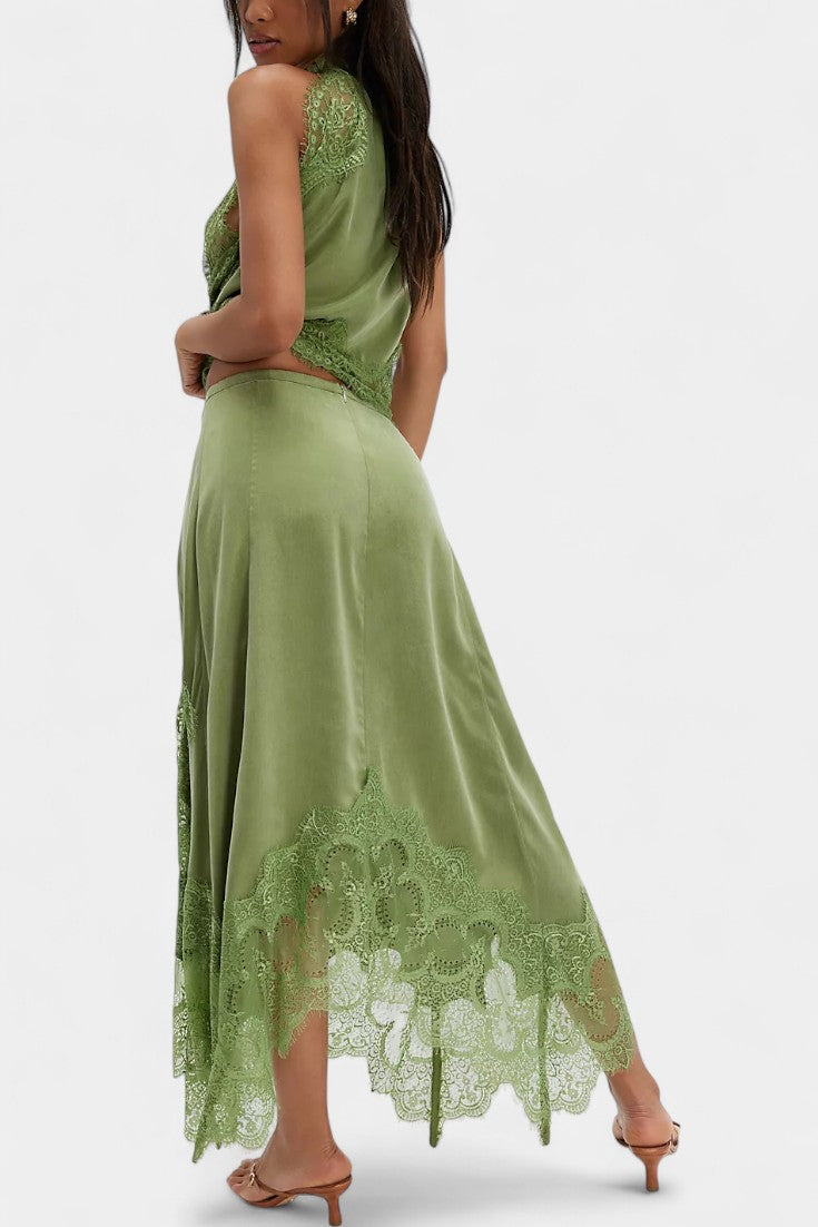 Nada Midi Suknja s Čipkastim Detaljima i Asimetričnom Porubom
