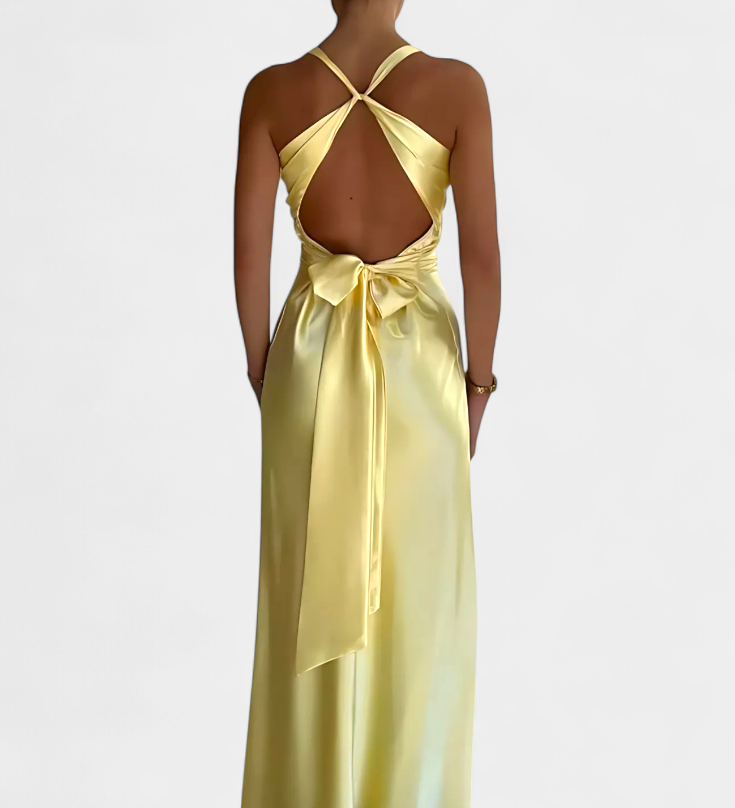 Ivana Haljina od Satena s Otvorenim Leđima i Velikim Razrezom