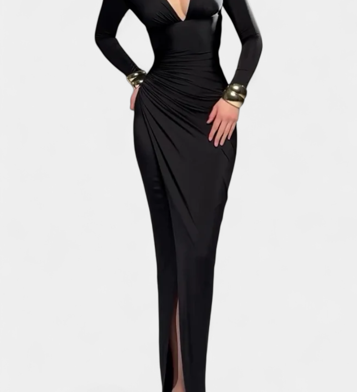 Jelena Haljina s Dugim Rukavima i Dubokim V Izrezom