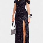 • Visoki prorez na bedru koji dodaje senzualnost i pokret