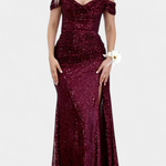 Očaravajuća silueta stvorena da zablista u nezaboravnim noćima. Renata kombinira drapirani dekolte bez naramenica s naboranim korzetom koji ističe figuru, dok visoki prorez na bedru dodaje hrabrost. Njen sirena kroj s laganim repom unosi dramatičnost i eleganciju, čineći je savršenim komadom za gala događaje i formalne proslave.