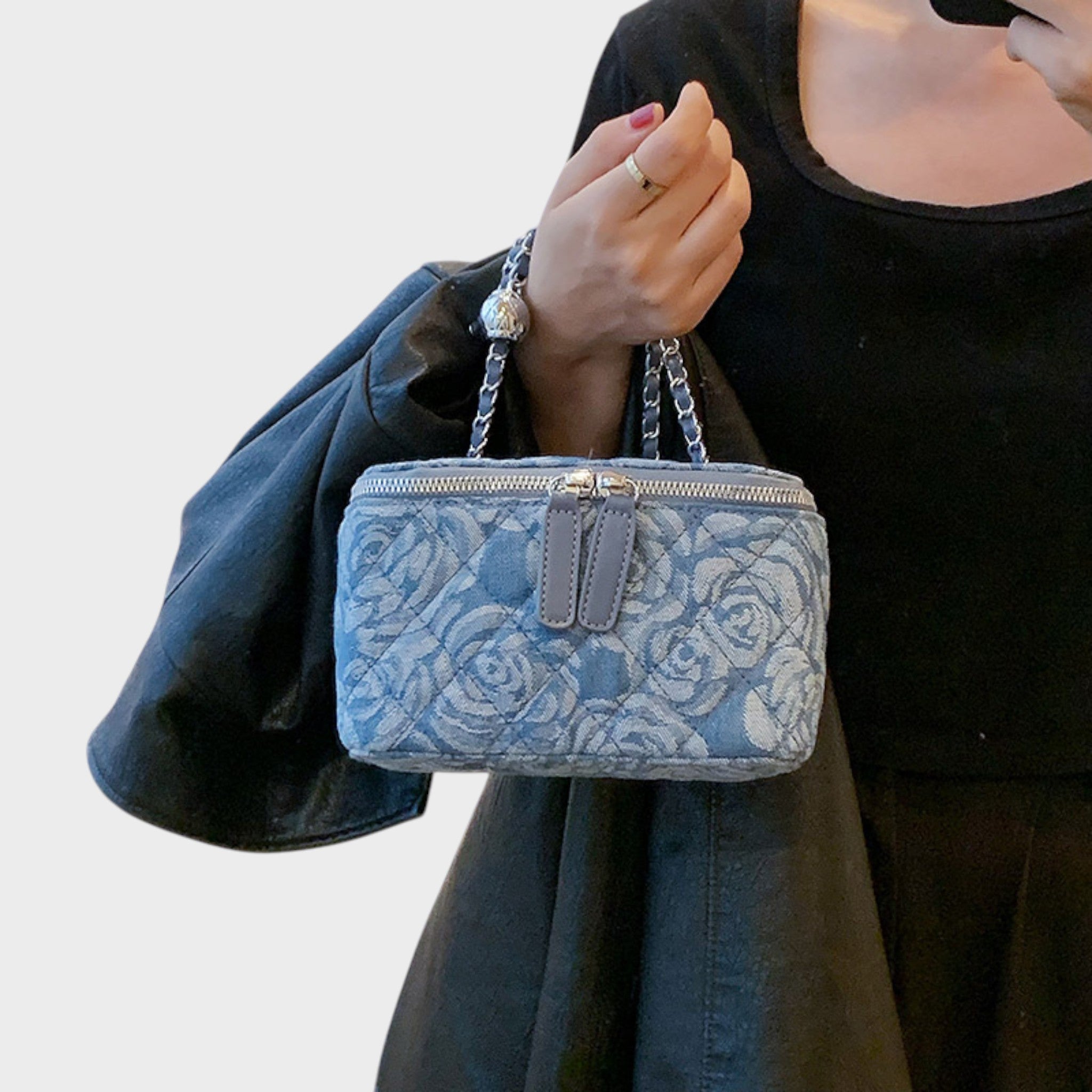 Ova torba je savršen izbor za one koji vole stil s romantičnim dodirom. S reljefnim cvjetnim uzorkom i sofisticiranim tekstilnim završetkom, donosi lagani, kreativni i ženski izgled. Njezin strukturirani oblik i ručka s lancem donose ravnotežu između ležernog i elegantnog, čineći je jedinstvenim komadom koji ističe vašu osobnost u svakoj prilici.