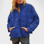 Ova prošivena jakna savršen je spoj funkcionalnosti i modernog dizajna. Lagana, a istovremeno dovoljno topla da vas štiti u hladnijim danima, pruža maksimalnu udobnost i slobodu kretanja. S praktičnim džepovima i udobnim krojem, odličan je izbor za svakodnevne šetnje, putovanja ili gradske kombinacije.