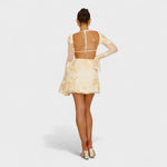 Naša haljina Julia savršena je kombinacija sofisticiranosti i odvažnosti. Njezin mini kroj, polu-prozirne rukave i delikatne cvjetne vezove stvaraju ženstvenu siluetu koja naglašava svaki pokret. Idealna za posebne događaje ili za isticanje na večernjem izlasku.