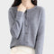 Svestrani kardigan ravnog, blago opuštenog kroja. Fina, mekana pletenina ugodna je na koži i lijepo pada bez nabiranja. Klasični okrugli izrez i linija gumbi daju uredan, profinjen izgled, dok rebraste manšete i završetak čuvaju formu. Nosi ga zakopčan kao pulover ili otvoren preko košulje, T-majice ili haljine – od ureda do vikenda.