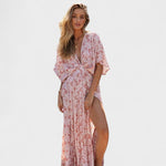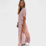 Ova boho haljina u nježnom tonu s elegantnim prorezom savršen je izbor za ljetne dane i večernje izlaske. Lepršav kroj naglašava ženstvenu siluetu, dok prorez dodaje dozu zavodljivosti i lakoće. Idealna za plažu, šetnje uz more ili posebne prigode kada želite zablistati.