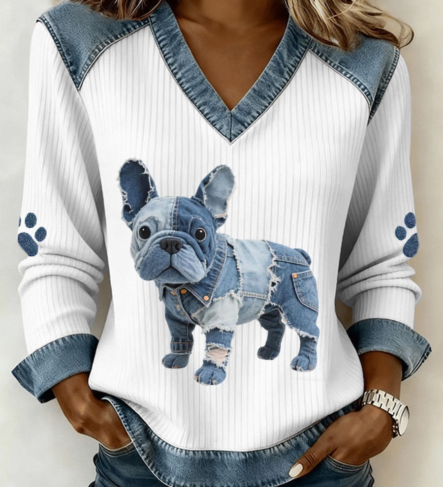 Abril - Ženska patchwork majica od traperice s V izrezom