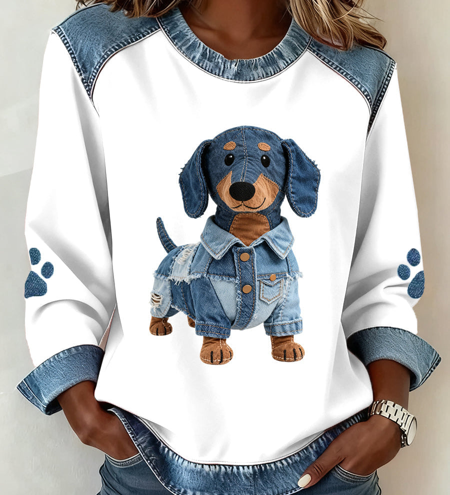 Reina - Ženska dukserica s kapuljačom u patchwork dizajnu od trapera za jazavčare