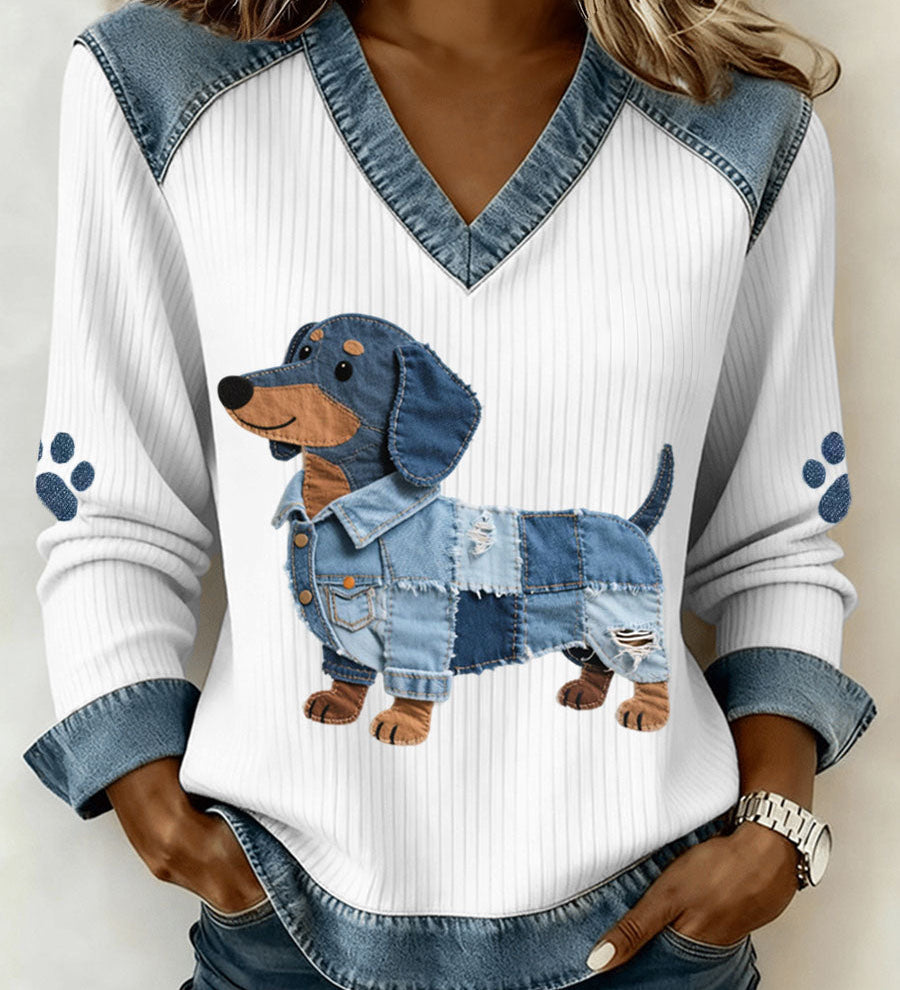 Sombra - Čarobni ženski jazavčar s umjetničkim patchworkom od denima i V-izrezom