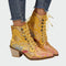 Ženske **čizme s orijentalnim uzorkom** u ljubičastoj i zlatnoj nijansi koje se ističu svojim luksuznim izgledom. Kombinacija **izvezenih detalja** s **vezicama i niskom petom** nudi stil i udobnost, idealno za modne kombinacije koje ne prolaze nezapaženo.