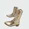 Ženske **kaubojke u metalik ružičastoj** boji koje privlače poglede svojim jedinstvenim karakterom. Imaju **bogat vezeni uzorak** i bočni patentni zatvarač za jednostavno oblačenje, dok niska drvena peta pruža udobnost i stil pri svakom vašem koraku. Idealne su za hrabre street-style kombinacije i modne nastupe koji se ističu.