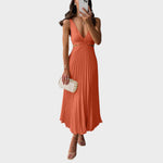 Katarina - Elegantna Haljina s V-Izrezom i Plisiranim Suknjom