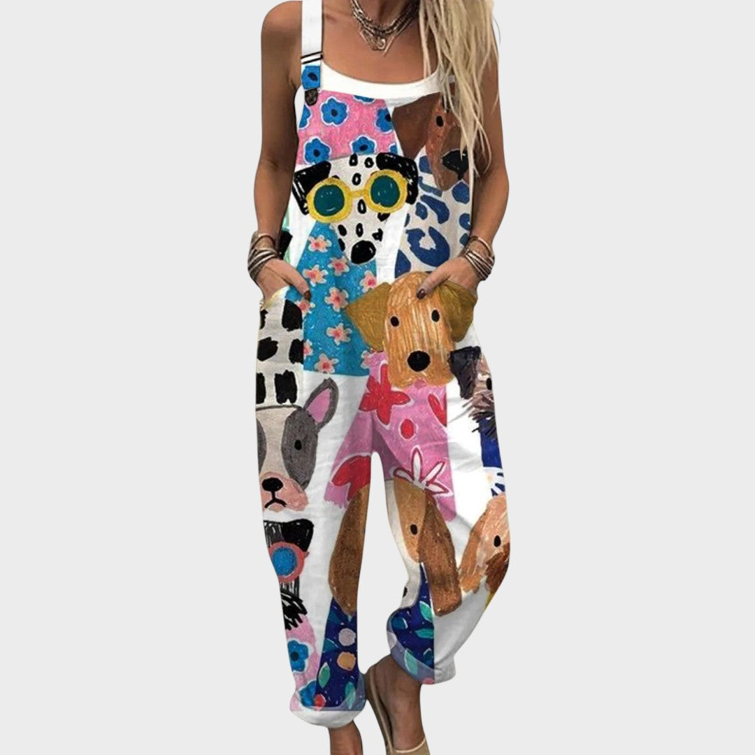 Ovaj ležerni kombinezon spaja udobnost i jedinstven dizajn u komad odjeće koji ćete obožavati nositi svaki dan. Sa širokim krojem, praktičnim džepovima i razigranim detaljima, savršen je za šetnje, izlete ili opuštene trenutke kod kuće.