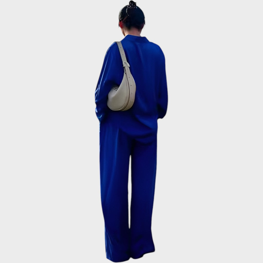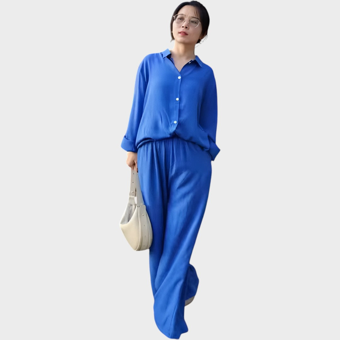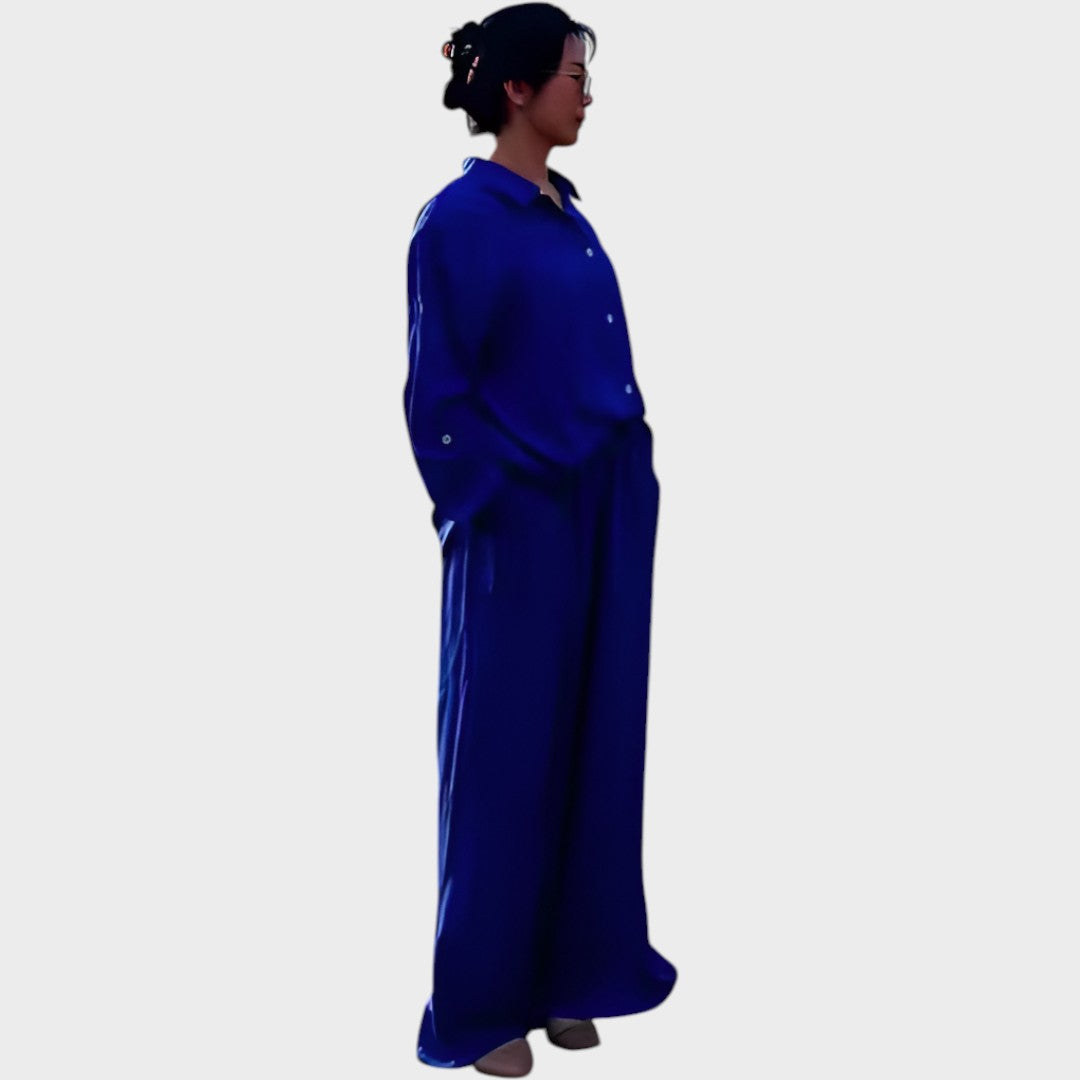 Ovaj komplet odiše bezvremenskom elegancijom i udobnošću. Izrađen od prozračnog i mekanog materijala, savršeno spaja opušten stil s sofisticiranim izgledom. Košulja širokog kroja i hlače ravnih nogavica pružaju slobodu pokreta i svestranost – idealno rješenje za one koji žele izgledati moderno, a osjećati se ugodno u svakoj prilici.