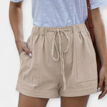 Ovi luksuzni šortsi donose sjaj i udobnost u svaki vaš izgled. Satenska tekstura i diskretni remen s prstenom stvaraju profinjen izgled koji se ističe, dok elastična struk pruža udobnost tijelu.