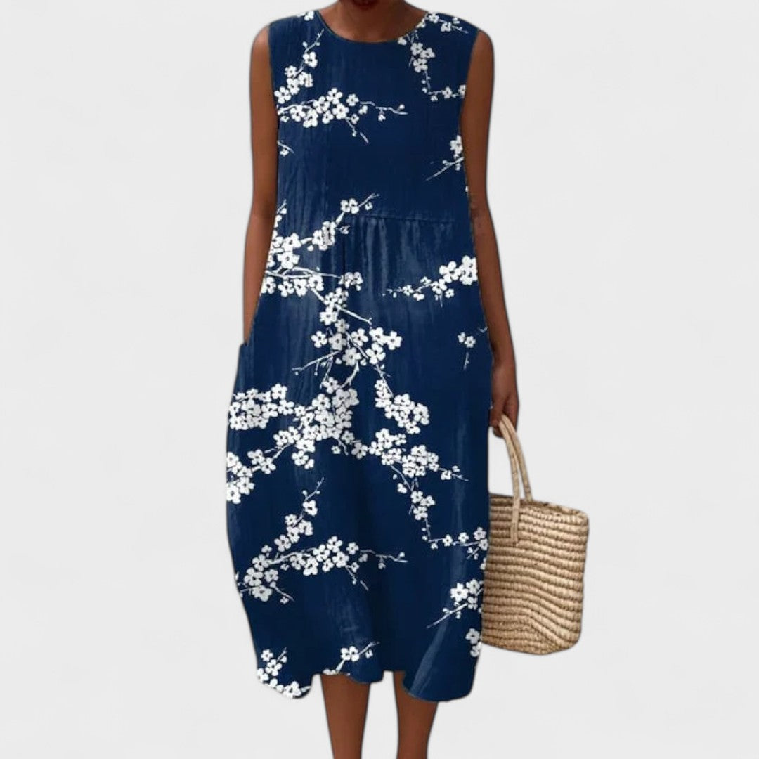 Ova lagana i prozračna haljina savršeno kombinira stil i praktičnost, dajući vam slobodu kretanja i sofisticiran izgled u svim prigodama. Njezin opušteni kroj i cvjetni uzorak čine je idealnim izborom za plažu, šetnju gradom ili ljetne susrete.