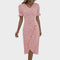 Ove ženske ljetne haljine savršen su spoj lepršavosti i praktičnosti. Lagani materijal i ženstveni kroj osiguravaju udobnost tokom vrućih dana, dok raznoliki uzorci i boje omogućuju da svaka žena pronađe idealan model za svoj stil. Zahvaljujući midi duljini i V-izrezu, haljina je jednako prikladna za plažu, gradsku šetnju ili večernji izlazak.