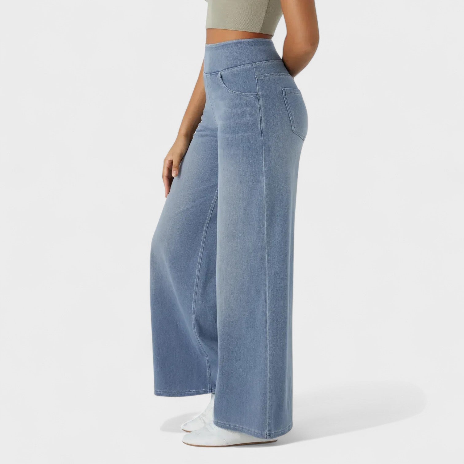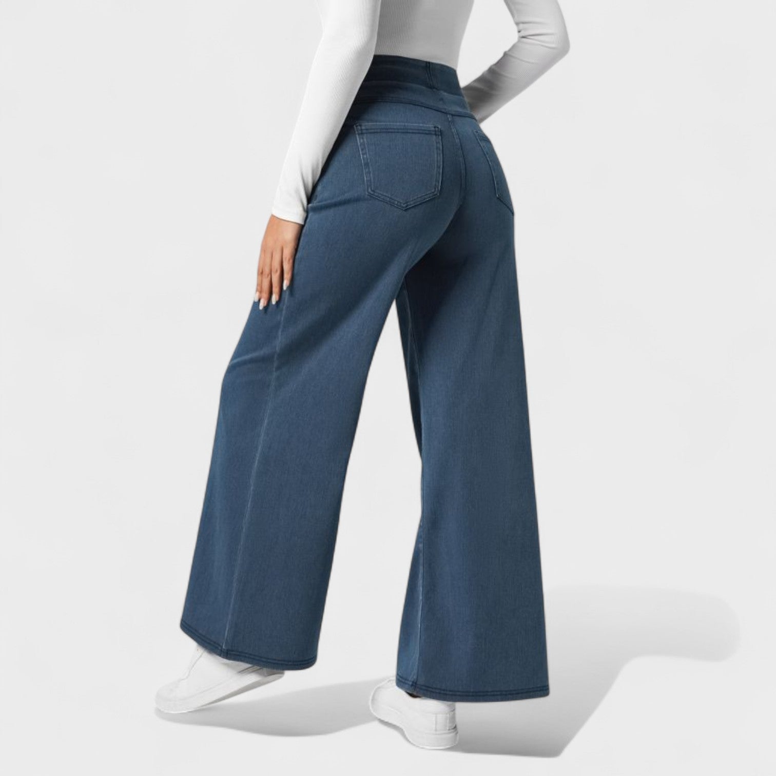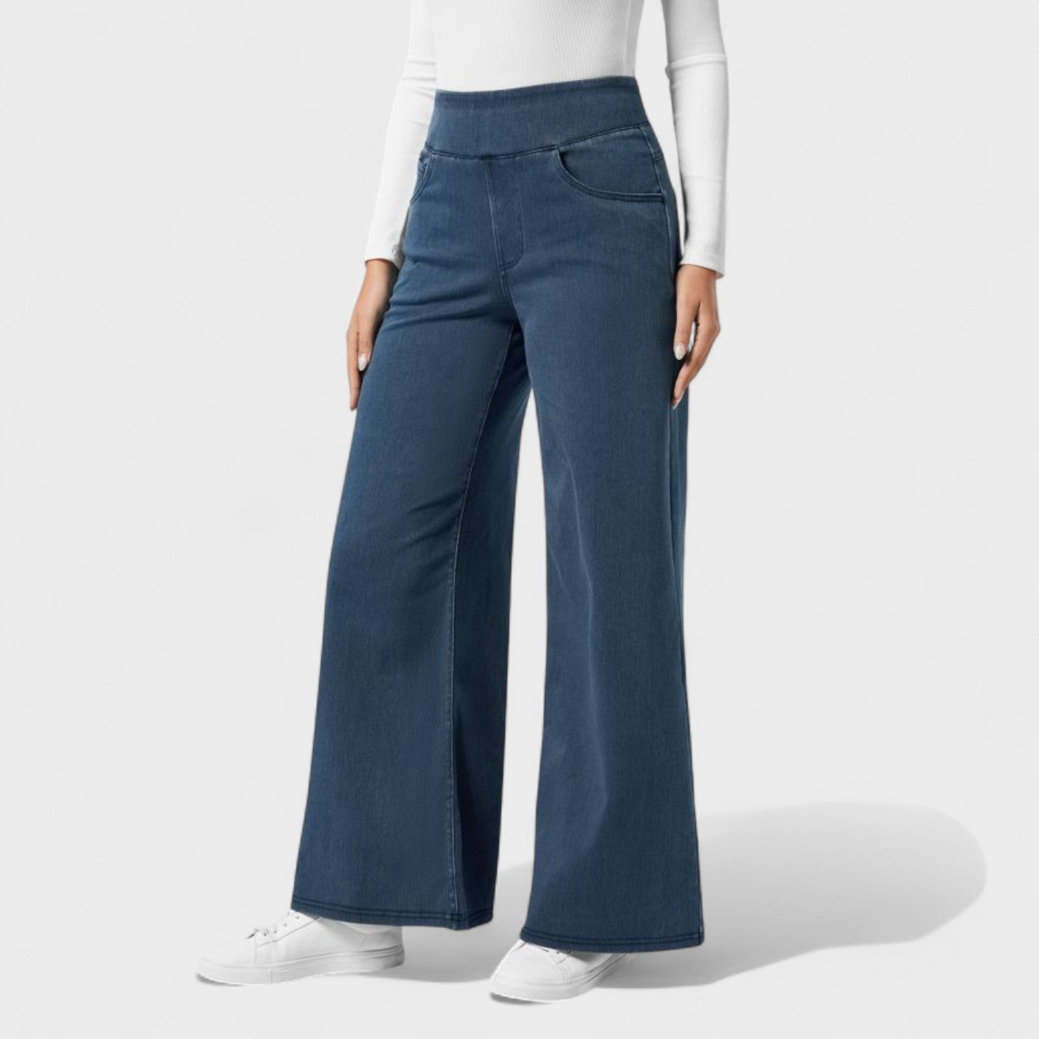 Otkrijte savršenu ravnotežu između udobnosti i elegancije s hlačama od traperica Clara. Njihov dizajn širokih nogavica izdužuje siluetu bez žrtvovanja udobnosti, idealno za aktivne žene koje žele izgledati dobro svaki dan.