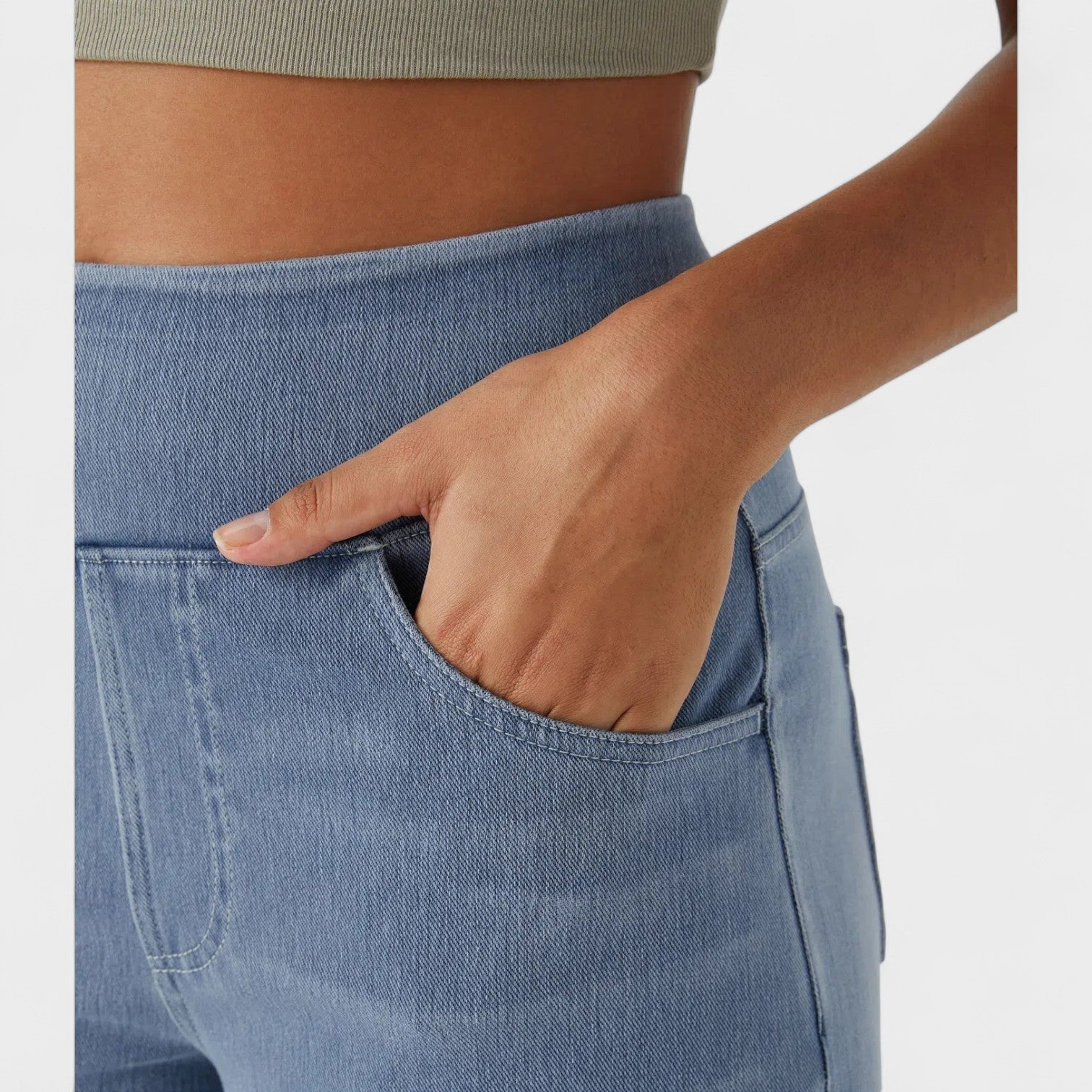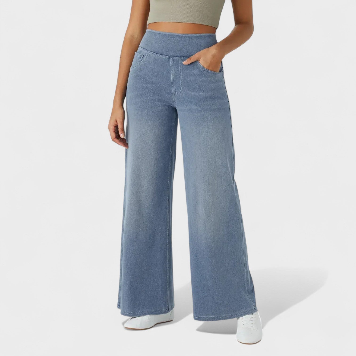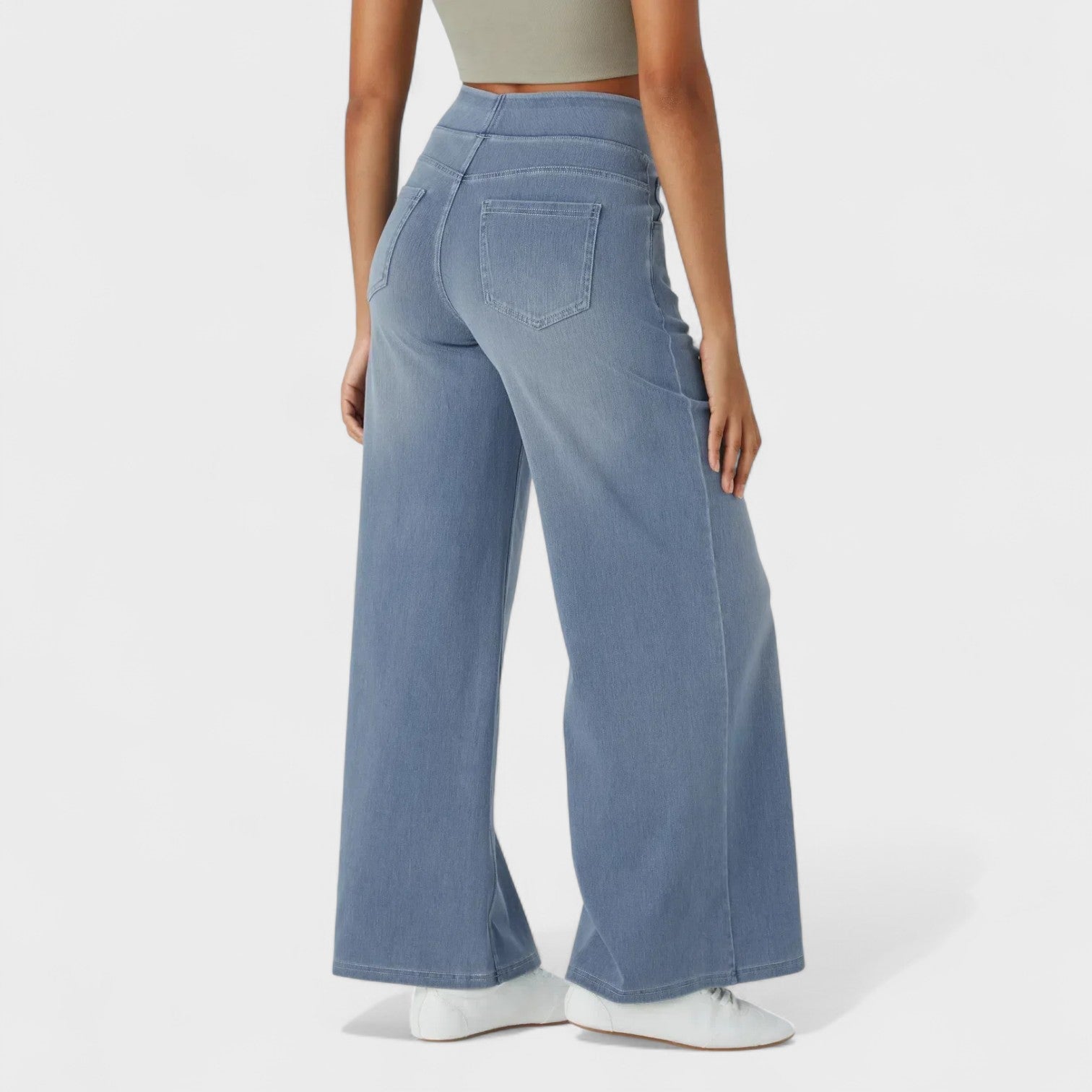 Otkrijte savršenu ravnotežu između udobnosti i elegancije s hlačama od traperica Clara. Njihov dizajn širokih nogavica izdužuje siluetu bez žrtvovanja udobnosti, idealno za aktivne žene koje žele izgledati dobro svaki dan.