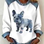 Alma - Ženska dukserica s patchworkom od denima u stilu francuskog buldoga
