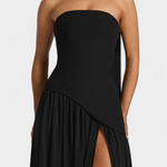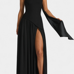Sofisticirana i puna pokreta, haljina Rajna kombinira strukturirani top s eterealnom lakoćom chiffona. Njen off shoulder izrez naglašava ženstvenost s rafiniranim dodirom, dok dugačka suknja s bočnim raskorakom donosi dinamiku i zavodljivost. Dizajnirana da se istakne na elegantnim prilikama, ovo je komad koji prirodno balansira modernost i bezvremenost.