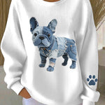 Rosa - Ženska dukserica s patchwork denimom u stilu francuskog buldoga